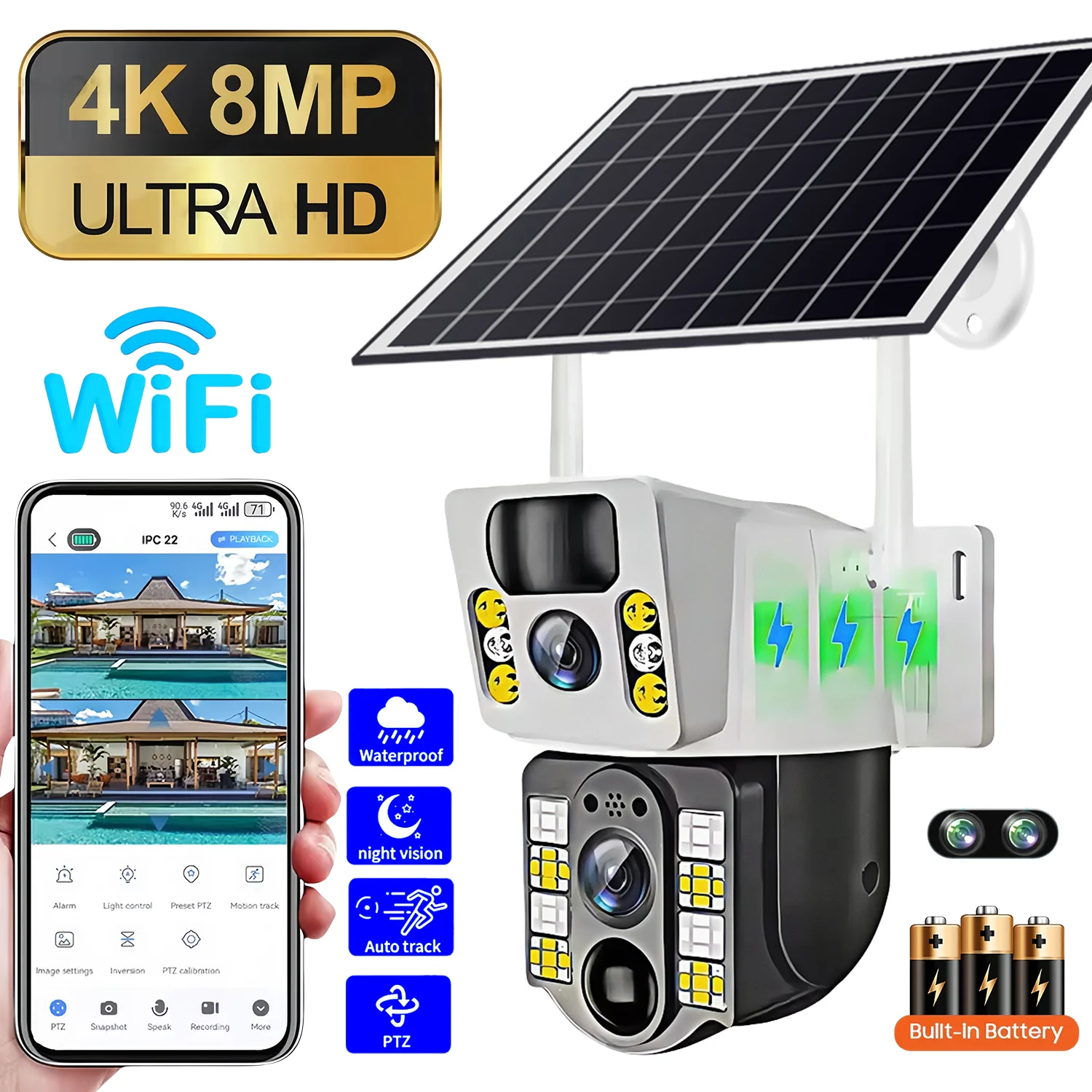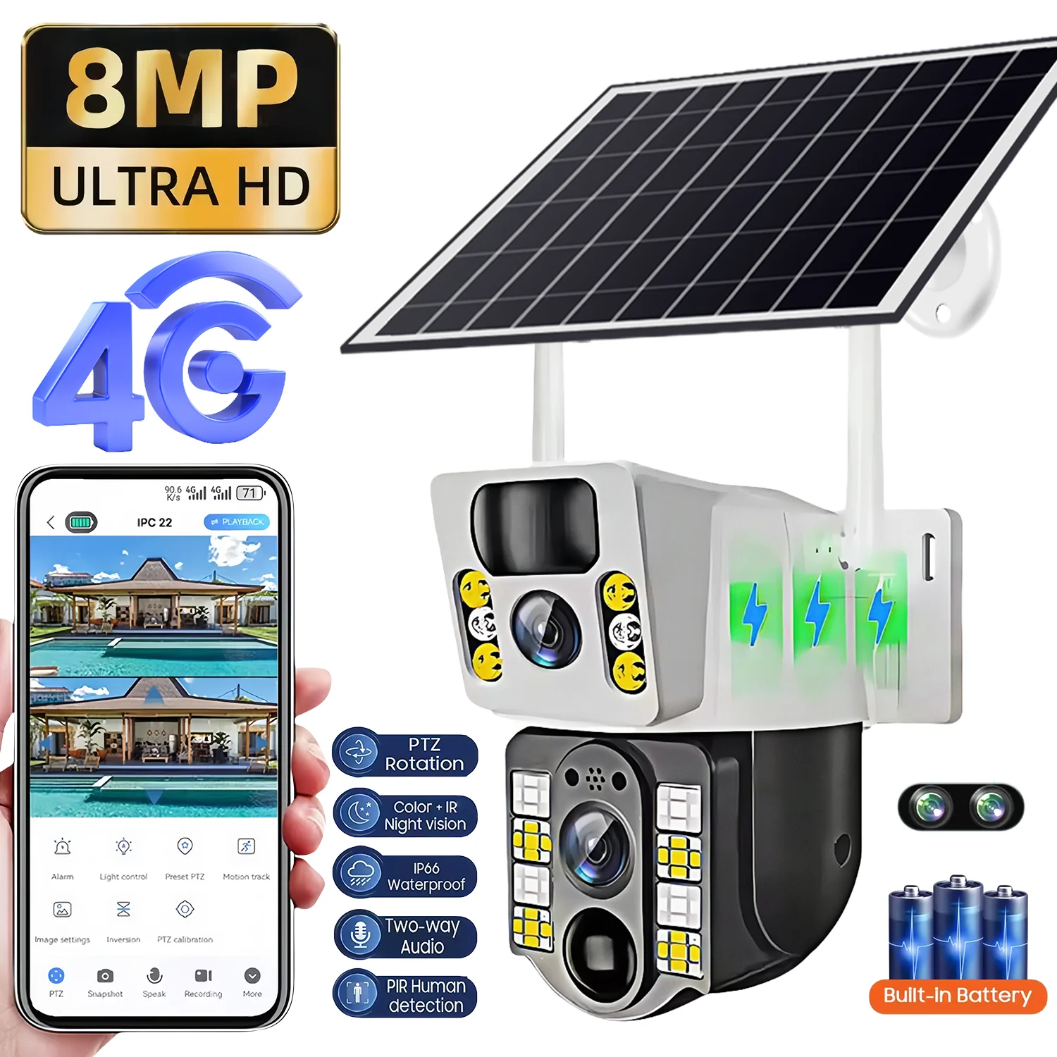 LS VISION 4G /WIFI caméra solaire extérieure 8MP double objectif PIR carte Sim int&eac...