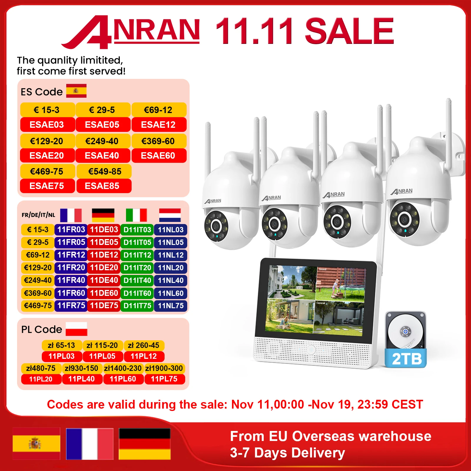 ANRAN 5MP système de vidéosurveillance ensemble 4CH NVR 4 caméras Surveillance ...