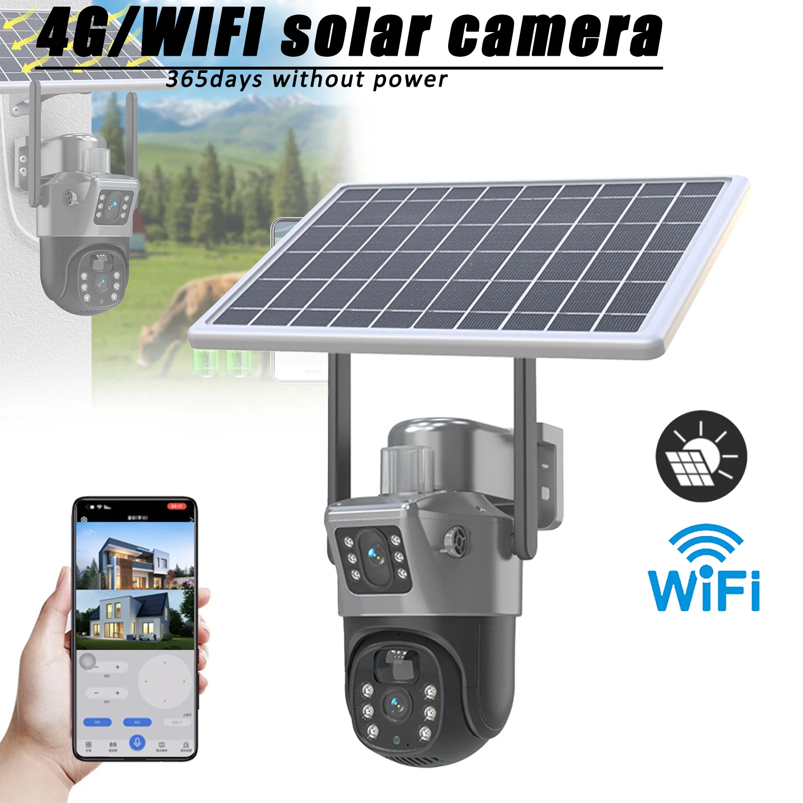 V380 4G caméra de Surveillance solaire double objectif batterie extérieure camé...
