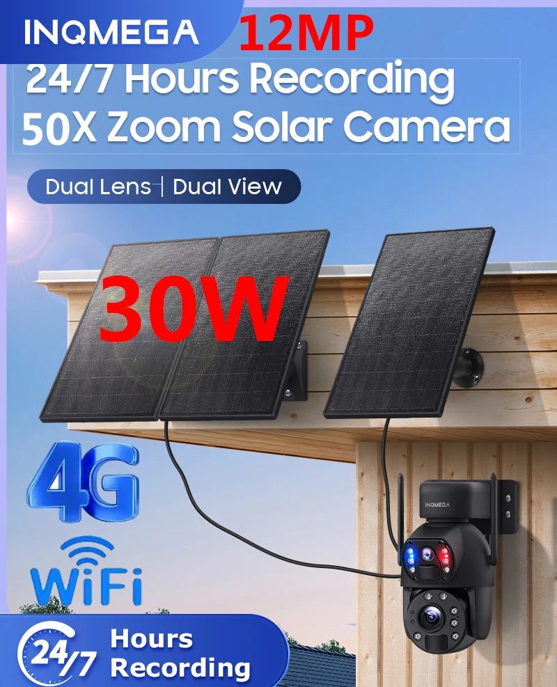 INQMEGA 30W 4G SIM panneau solaire caméra 12MP 50X ZOOM cam&...