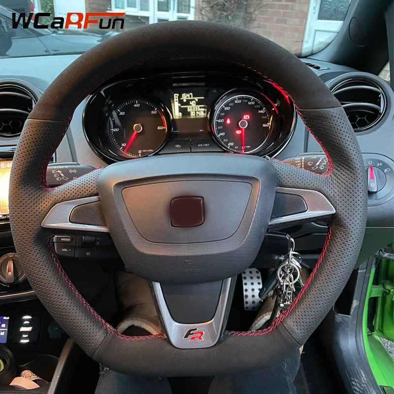 WCaRFun bricolage noir daim cuir voiture housses de volant pour Seat Ibiza(6J)(FR/CUPRA) 2015 Mii FR...