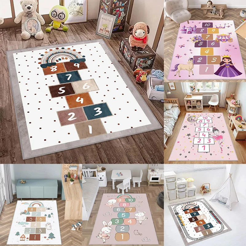 Tapis de course d'éducation intellectuelle pour chambre d'enfant, tapis de jeu de marelle de ...