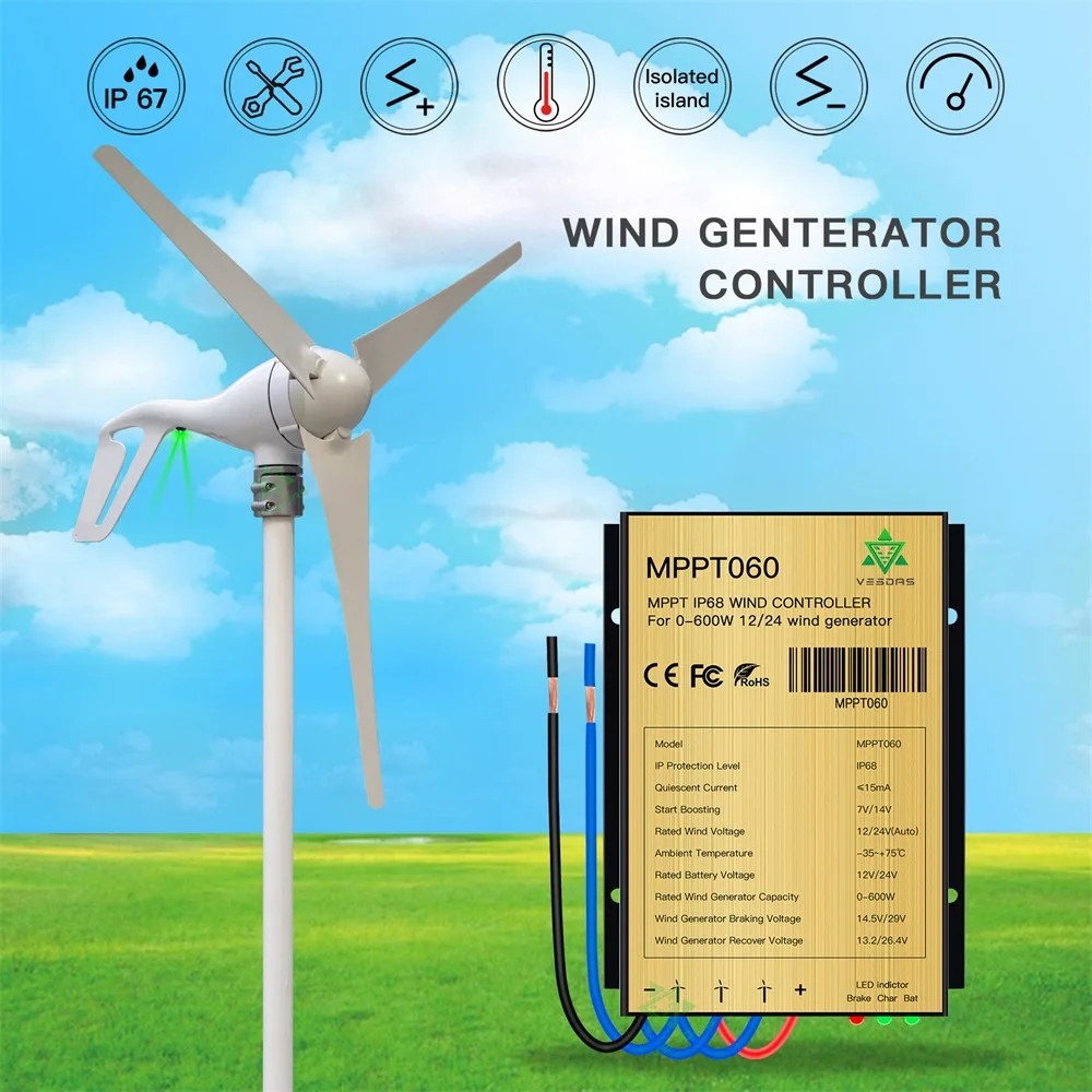 Contrôleur de charge et de décharge d'éolienne étanche IP68, booster de s...