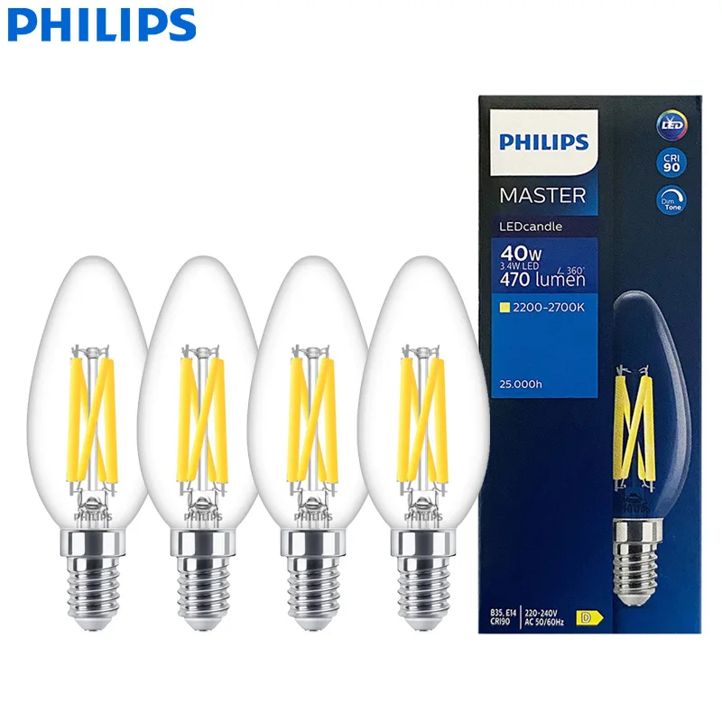 Philips Master – bougie LED E14, lampes à Filament 3.4W(=40W), ampoules classiques BA35...