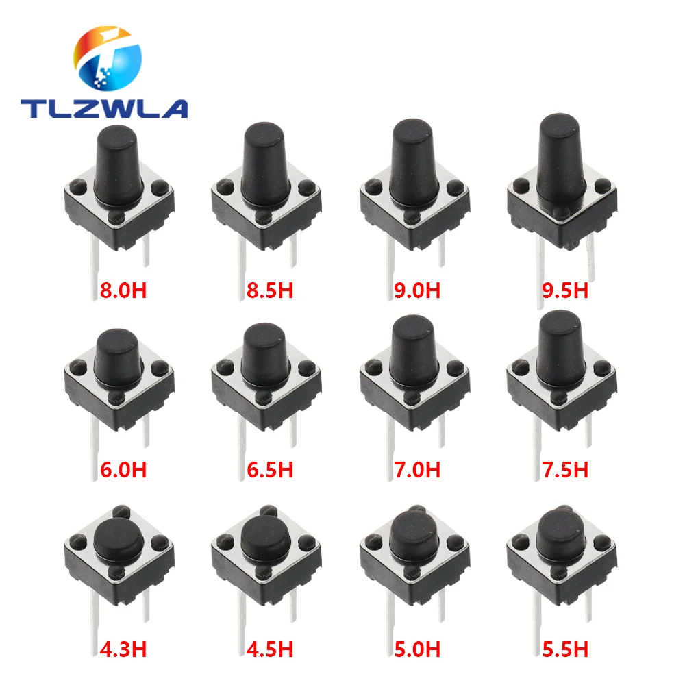 50 pièces moyen 2Pin 6x6x4.3/5/6/7/8/9/10mm interrupteur Tactile bouton poussoir commutateurs...