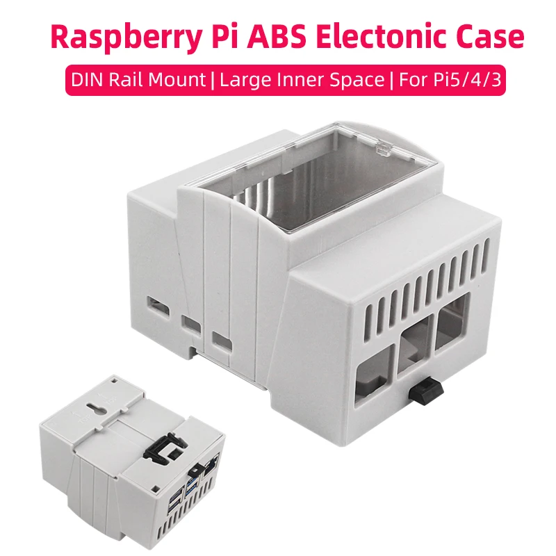 Raspberry Pi 5 boîtier ABS boîtier sur Rail DIN grand espace intérieur clair sup&...