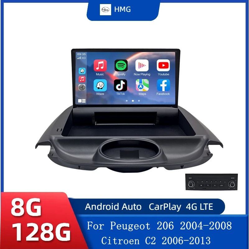 Autoradio HMG pour Peugeot 206 2004-2008 pour citroën C2 2006-2013 sans fil CarPlay Android Aut...