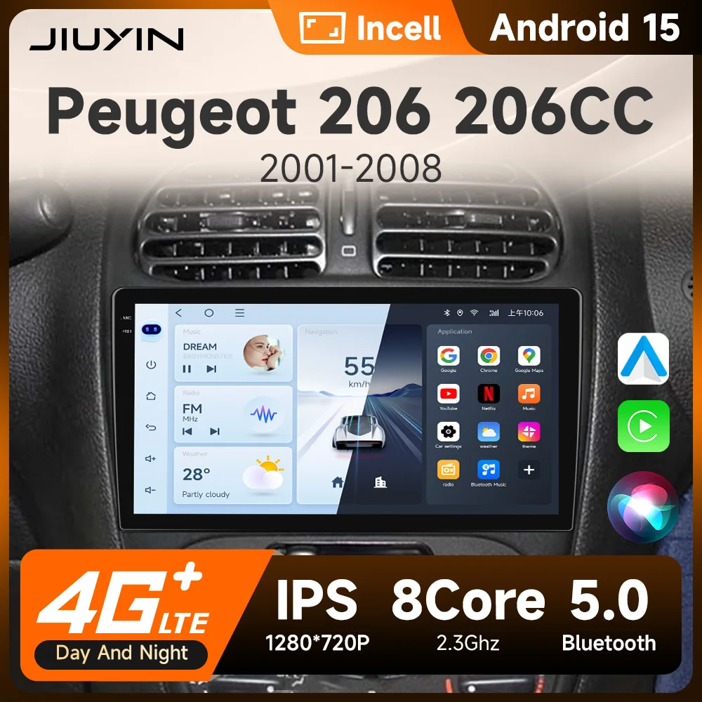 JIUYIN Android 13 autoradio pour PEUGEOT 206 206CC 206SW 2000-2008 ...