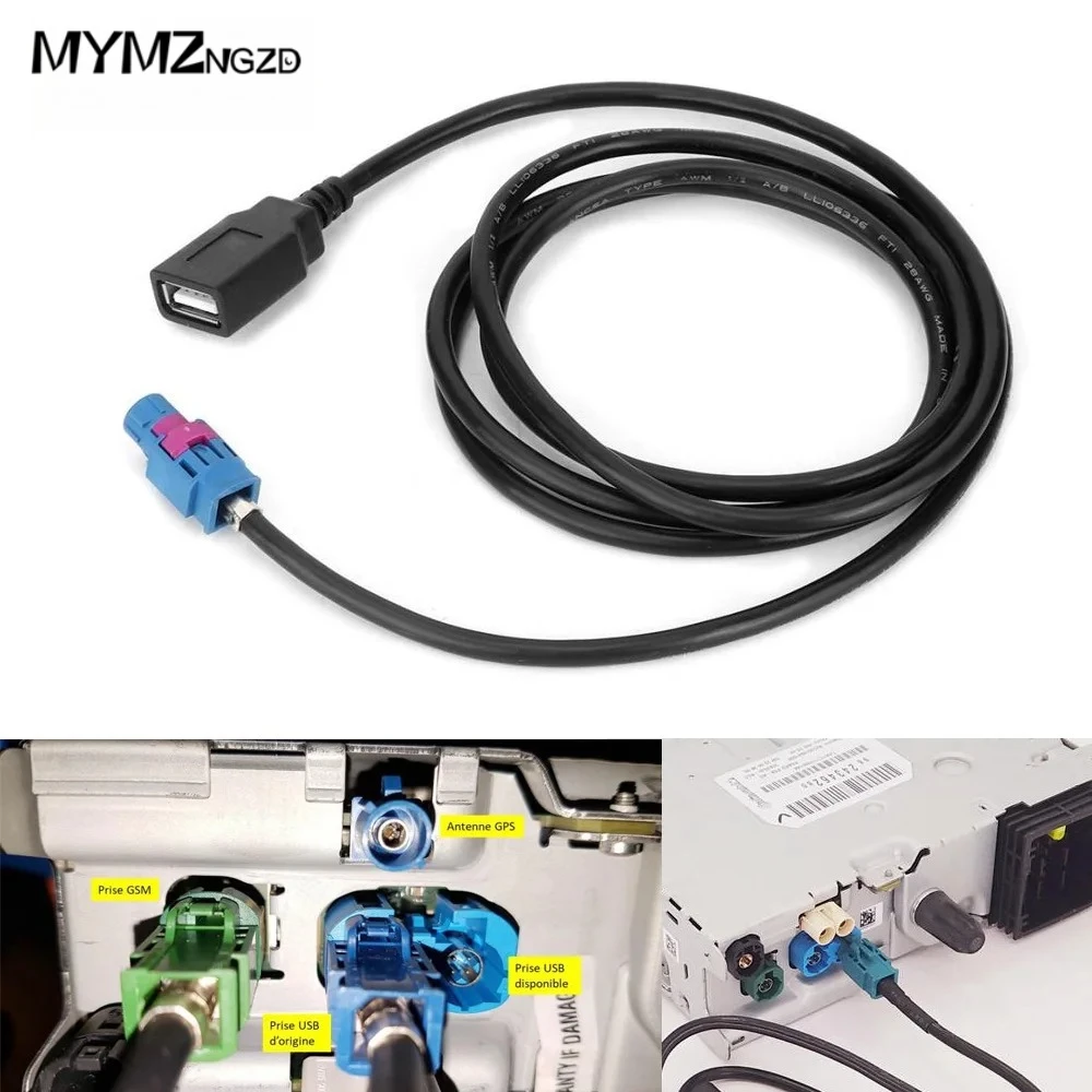 Câble USB et prises USB pour autoradio pour Peugeot 206 207 2...