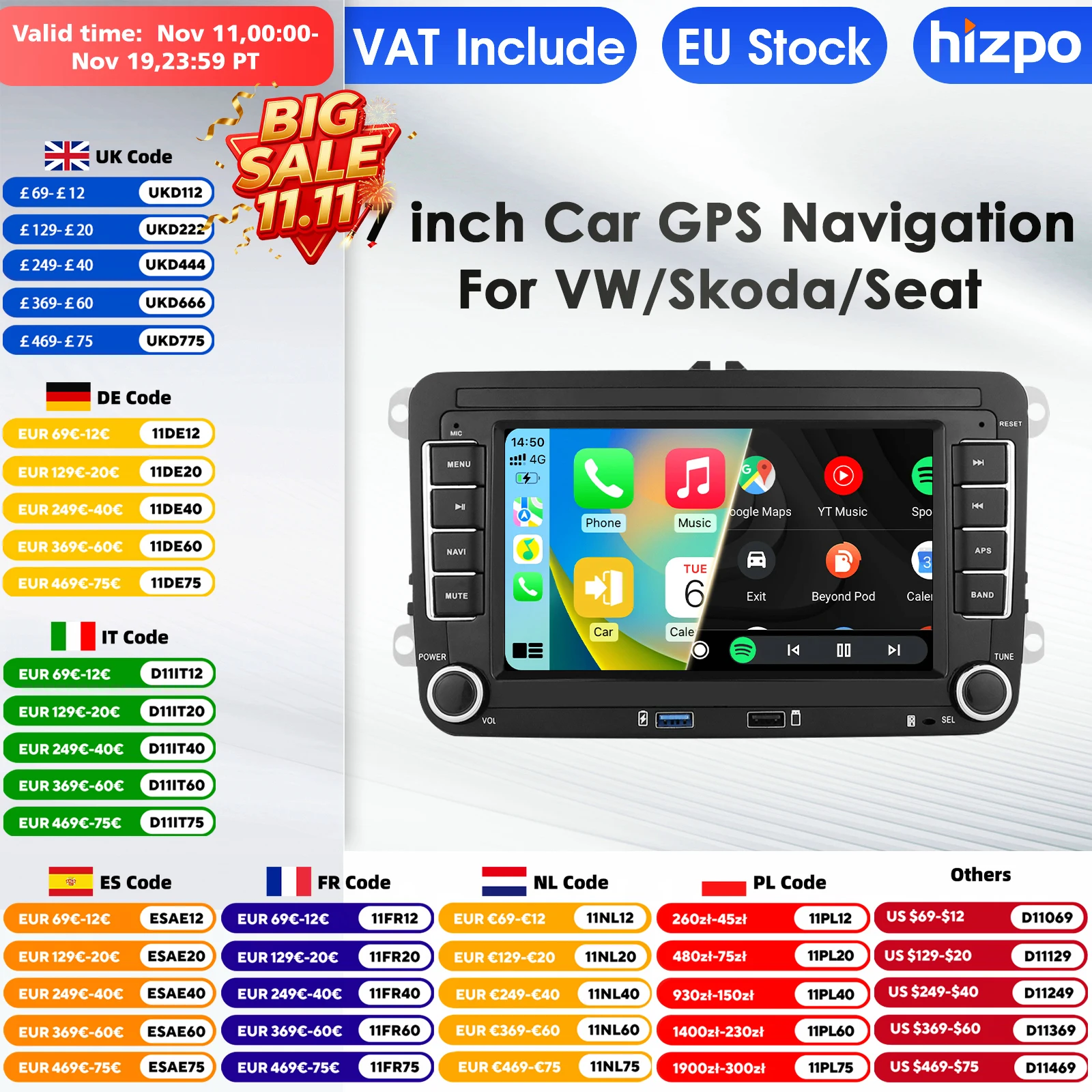 Hizpo 2Din 7 ''Carplay 4G AI systèmes Android 14 autoradio pour Volkswagen VW Passat B6 B7 T5...