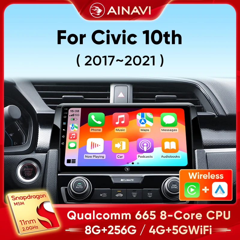 Ainavi-Autoradio pour Honda Civic, Lecteur Carplay sans fil, Androi...