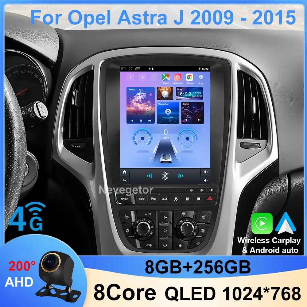 Autoradio vertical sans fil pour Opel Astra J 9.7-2009, Carplay, Android, Auto, Limitation 8 c&oelig...