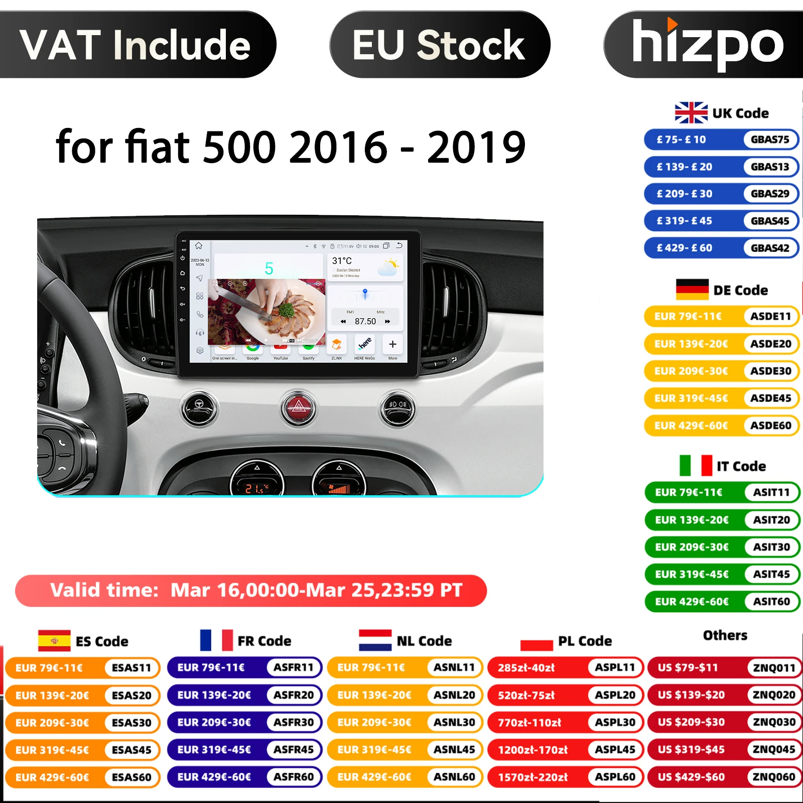 Hizpo 9-Lecteur de voiture sans fil Android Auto, Carplay, Limitation, Fiat 500, 2016, 2017, 2018, 2...
