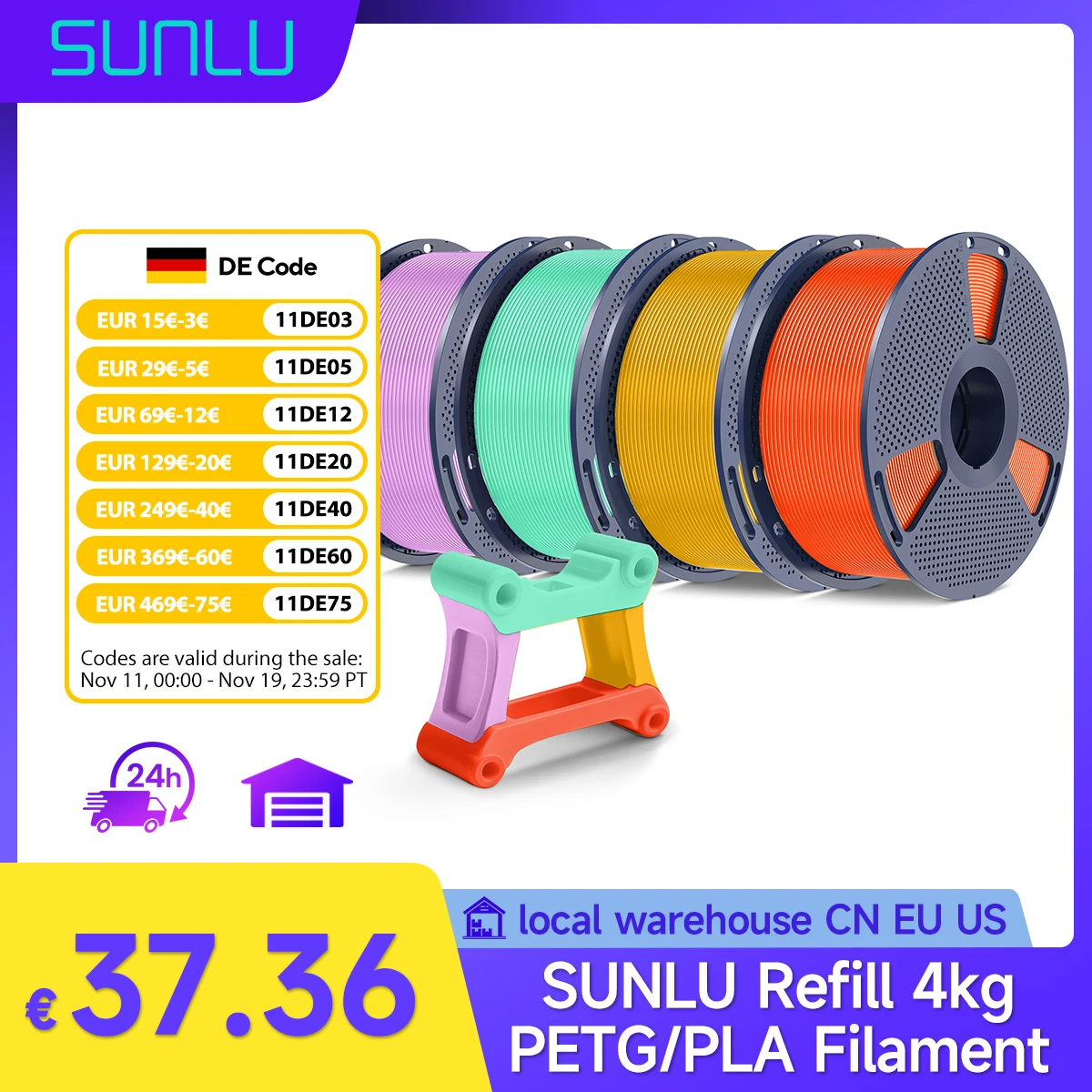 SUNLU recharge filament PETG pour imprimante 3D Bambu laboratoire/réalité/4 kg 4 roule...