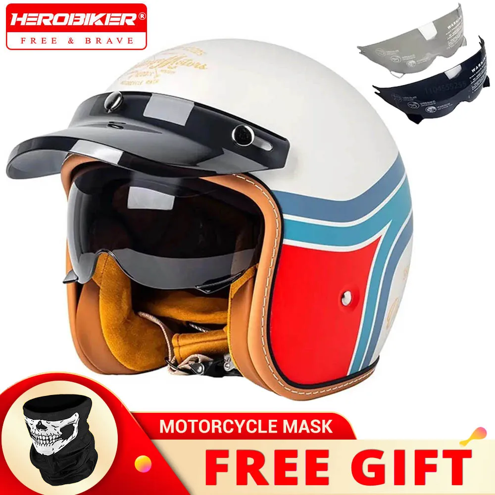 Casque de Moto rétro Moto 3/4 casques ouverts Certification DOT casques de Moto demi-visage A...