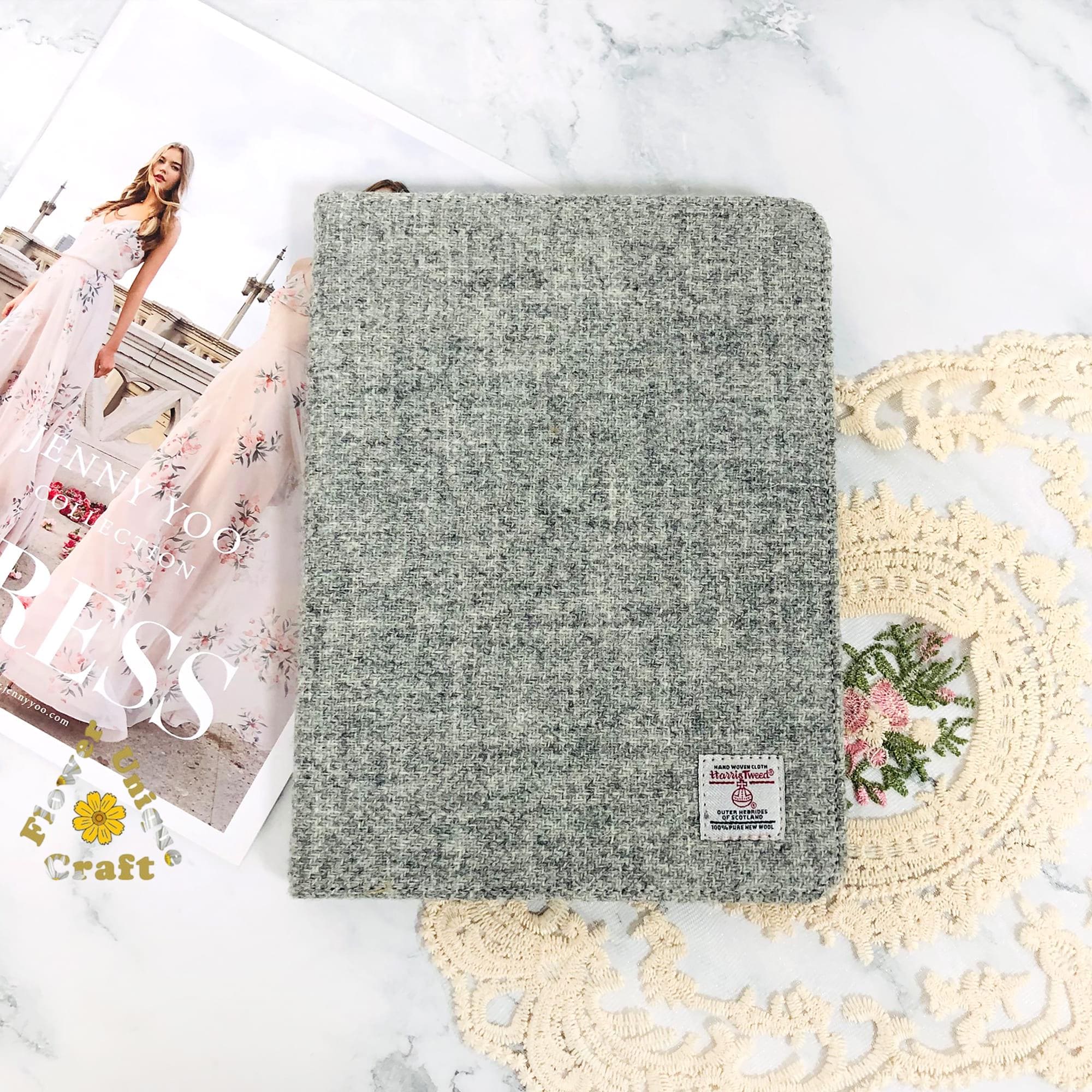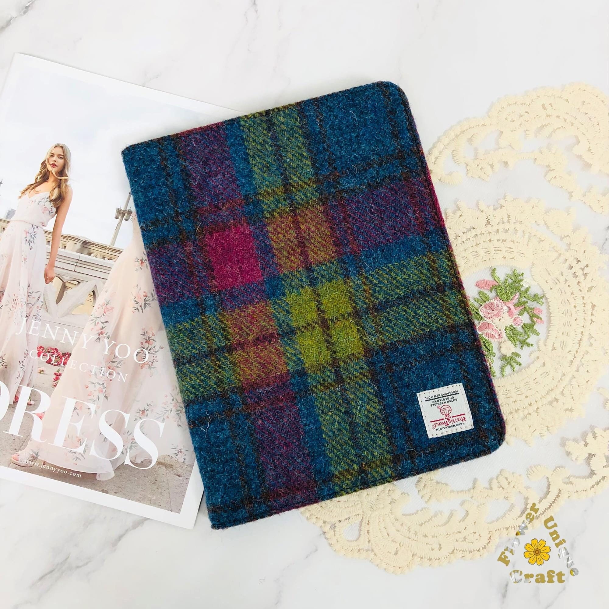 Coque ipad en tissu brodé en tissu Harris Tweed pour ipad mi...