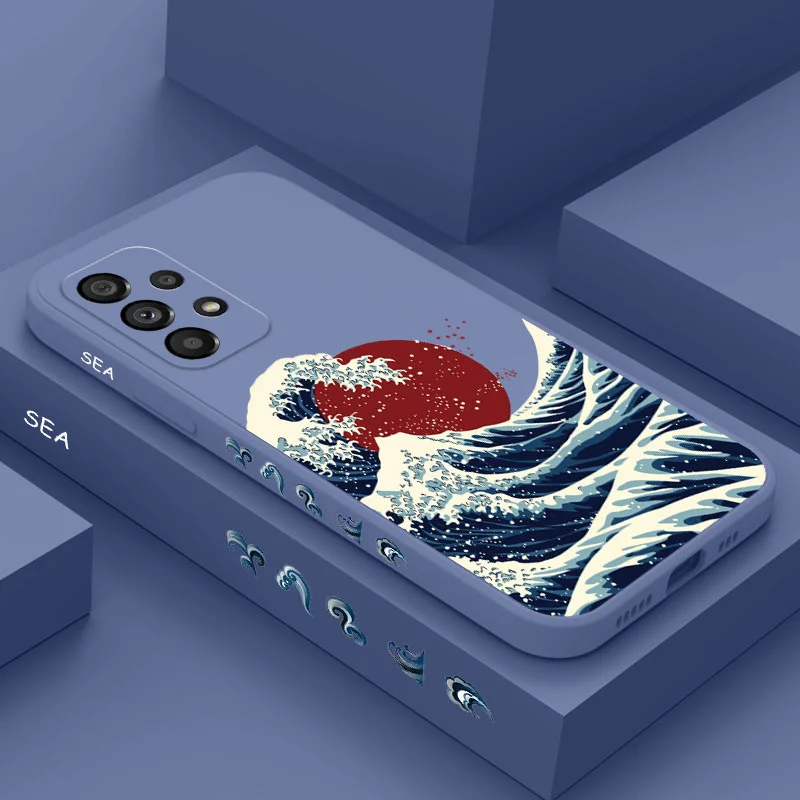 Coque rouge soleil vagues de mer, Samsung A17 A56 A36 A26 A54 A34 A24 A73 A53 A33 A23 A15 A25 A35 A5...