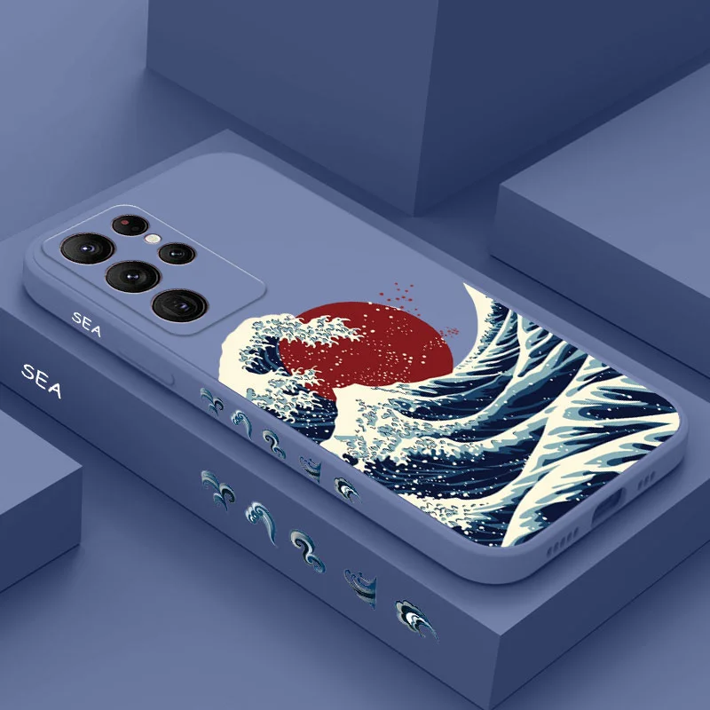 Coque de téléphone rouge soleil vagues de mer, étui pour Samsung Galaxy S25FE S...