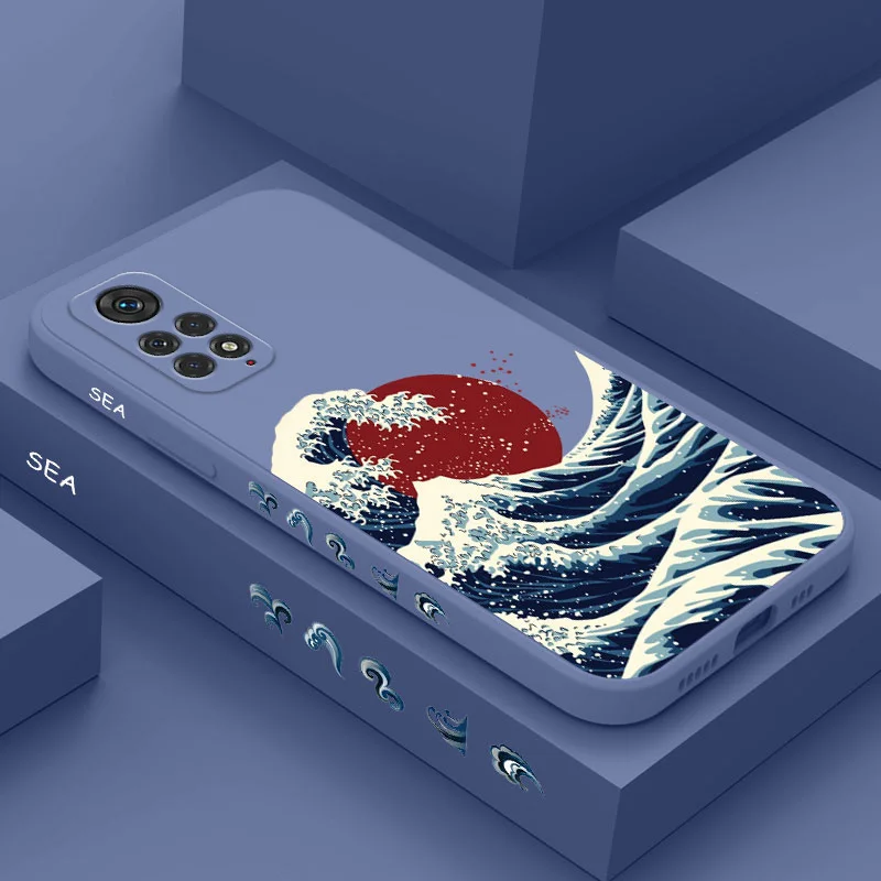 Coque de téléphone rouge soleil vagues de mer, pour Xiaomi Redmi Note 13 12 12S 11 11S...