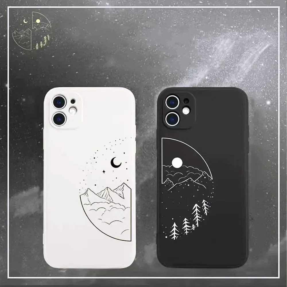 Coque de téléphone en silicone pour couple, coque simple, soleil, lune, noir, blanc, i...