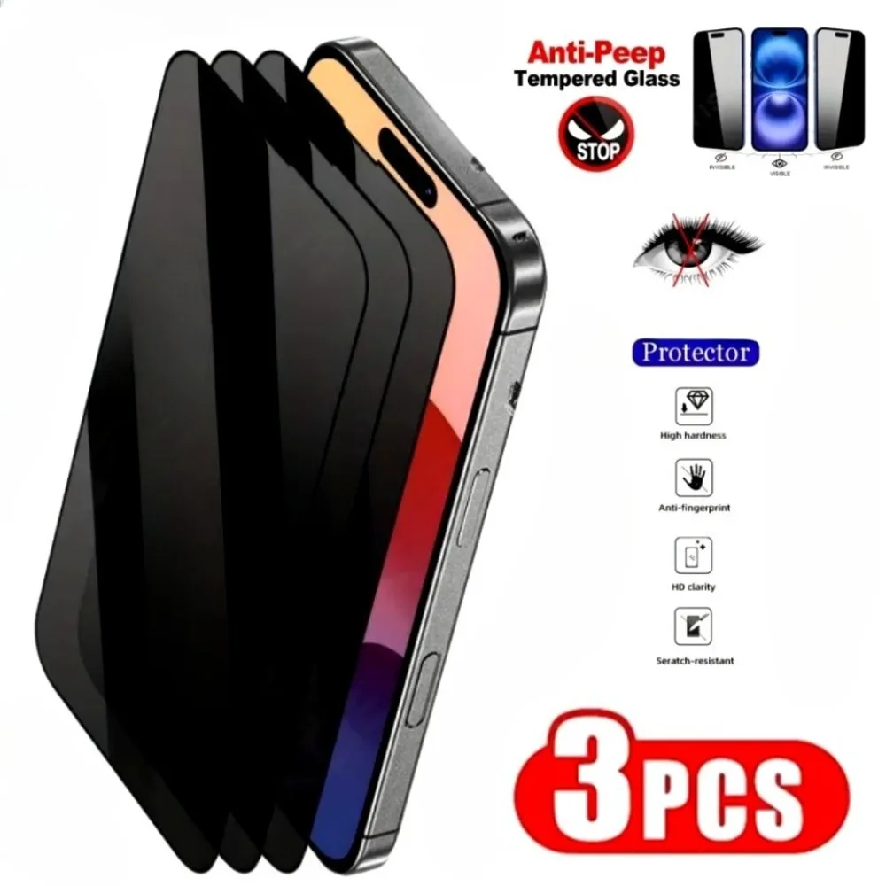 3 pièces Anti-espion verre trempé pour iPhone 17 16 15 14 Pro Max Air 16 15 Plus prote...