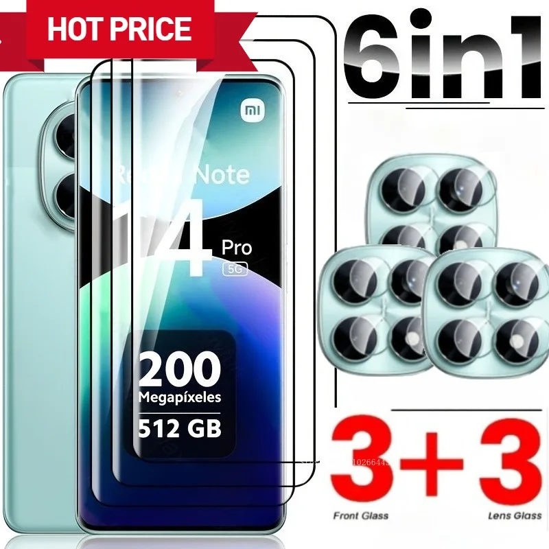 Protecteurs d'écran en verre trempé 6 en 1 pour Redmi Note 14 Pro HD, Film pour Redmi ...