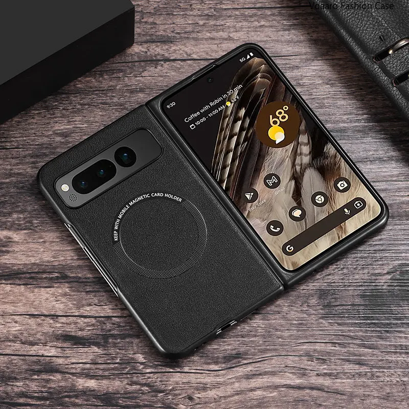 Étui de protection arrière en cuir PU Magsafe pour Google Pixel, coque de chargement s...
