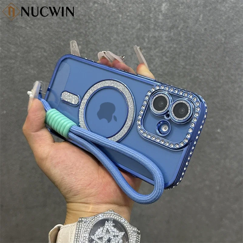 Étui de Charge magnétique sans fil Magsafe à paillettes plaquées de luxe...