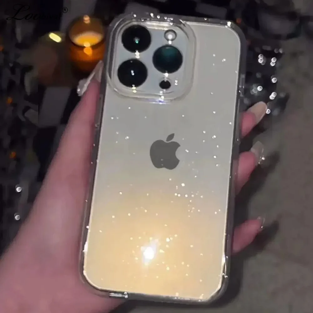 Coque transparente brillante à paillettes de luxe pour iPhone 16 15 14 Pro Max 13 12 11 16Pro...