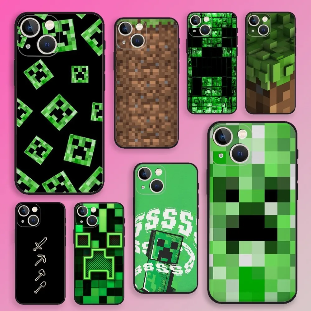 Coque de téléphone Monster Green Pixel, étui noir en Silicone souple pour iPhon...