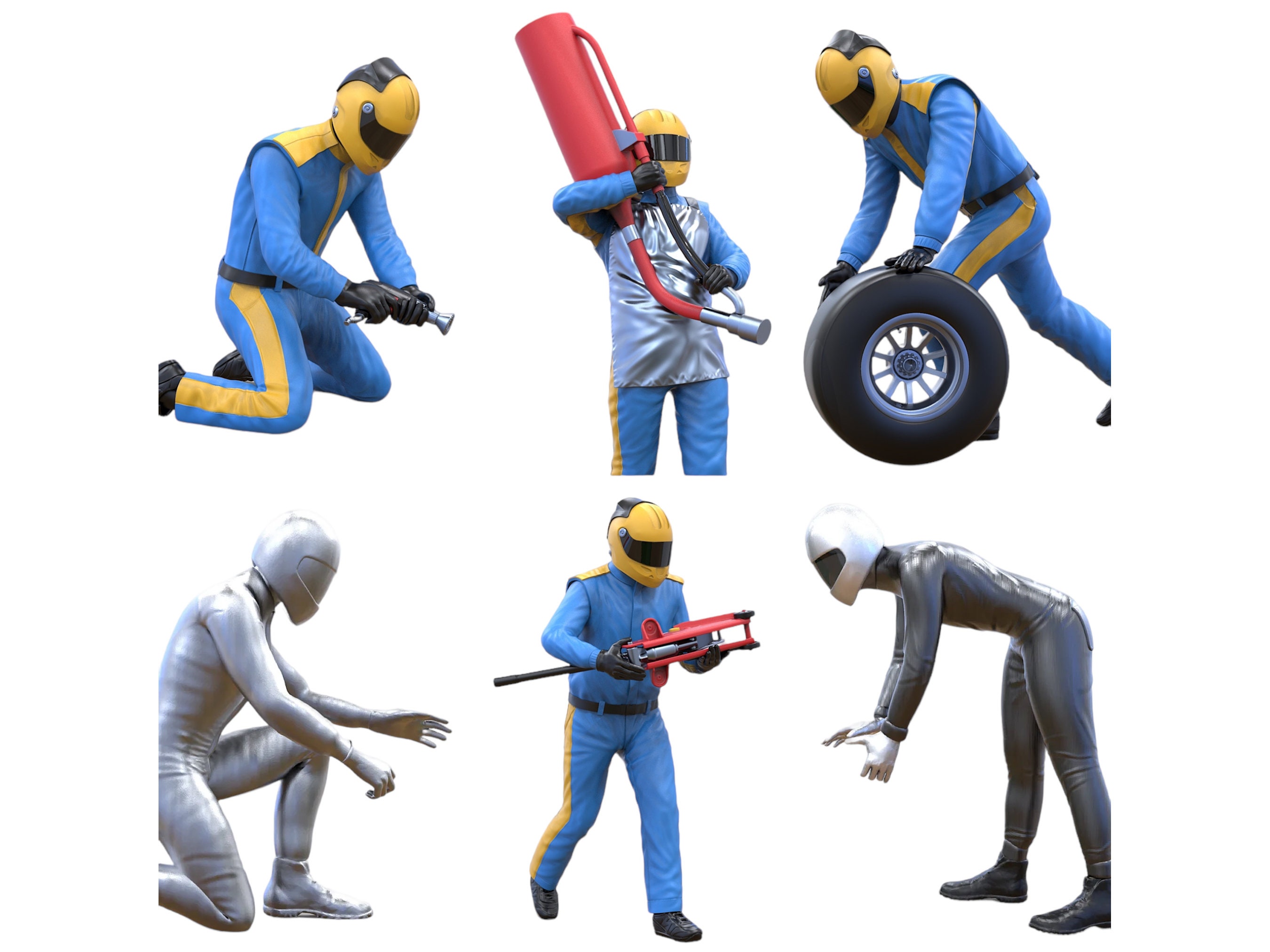 Pit Crew Mechanic Diorama Miniatures UNPAINTED Set (6 figurines) &E...