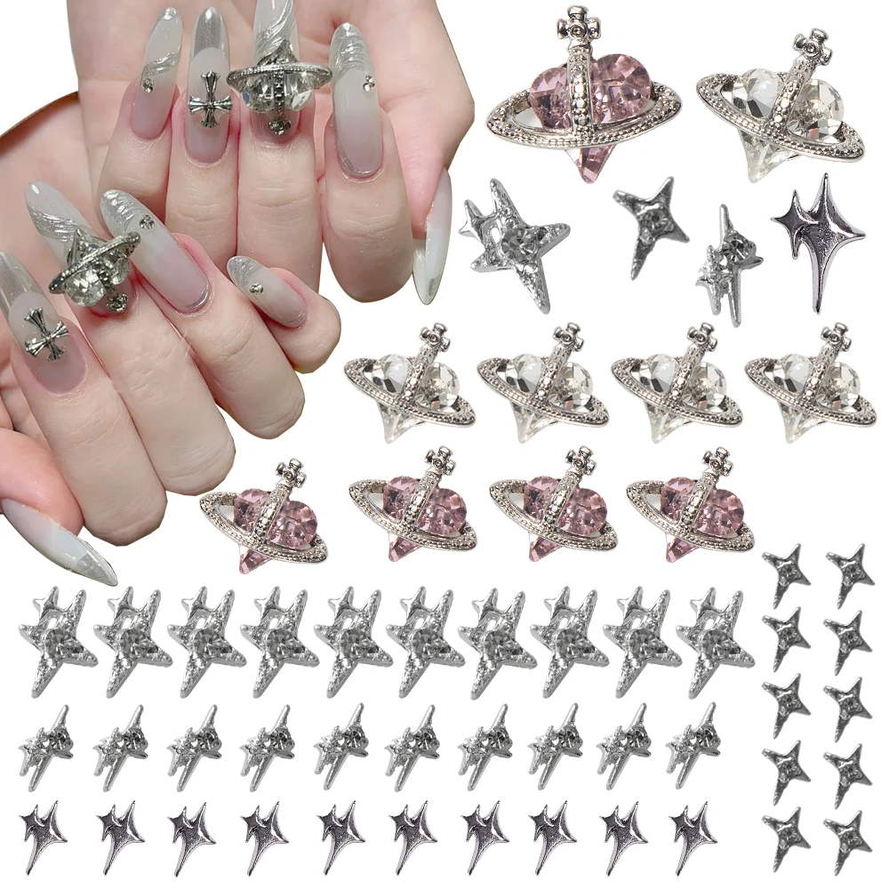 48 pièces planète ongles breloques 3D Nail Art bijoux Saturn forme ongles strass penta...
