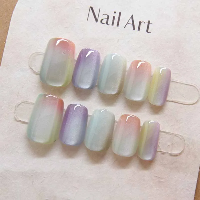 10 pièces femmes mode Chic multicolore oeil de chat printemps porter sur Patch pour ongles Pa...