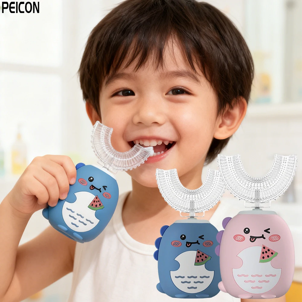 Brosse à dents électrique en silicone en forme de U pour enfants 360 ° Conception ...