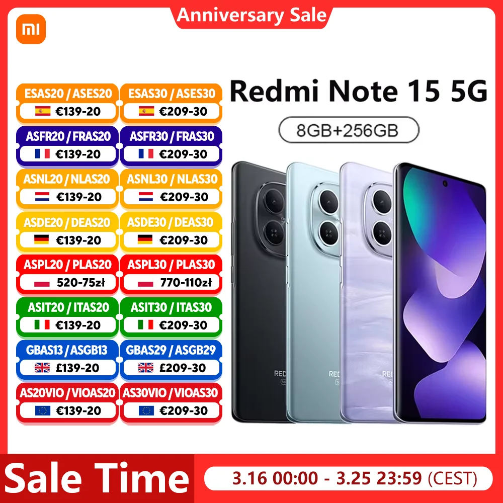 Smartphone Xiaomi Redmi Note 15 5G, NFC Snapdragon 6 Gen 3, écran 6,77 pouces 120 Hz, apparei...