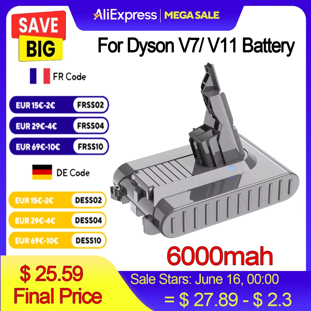Batterie de rechange 21,6 V 6000 mAh V6 V7 V8 V10 pour aspirateur à main sans fil Dyson All S...