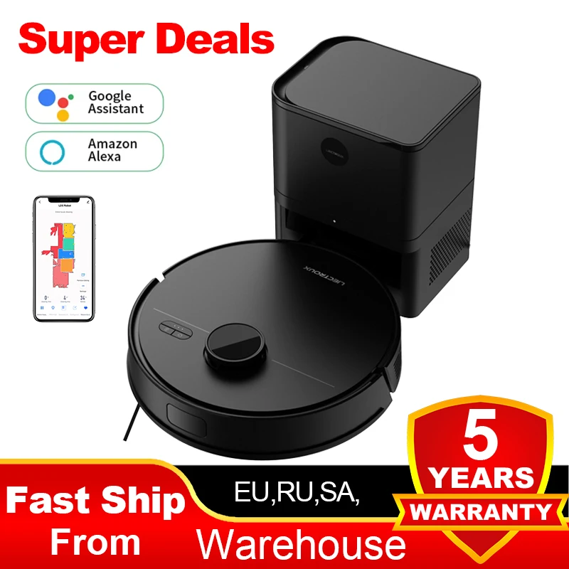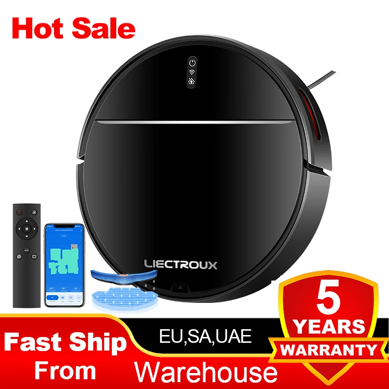 LIECTROUX V3S PRO Aspirateur Robot, Combo balayage sec et humide, Smart Mapping, App Wifi, Aspiratio...