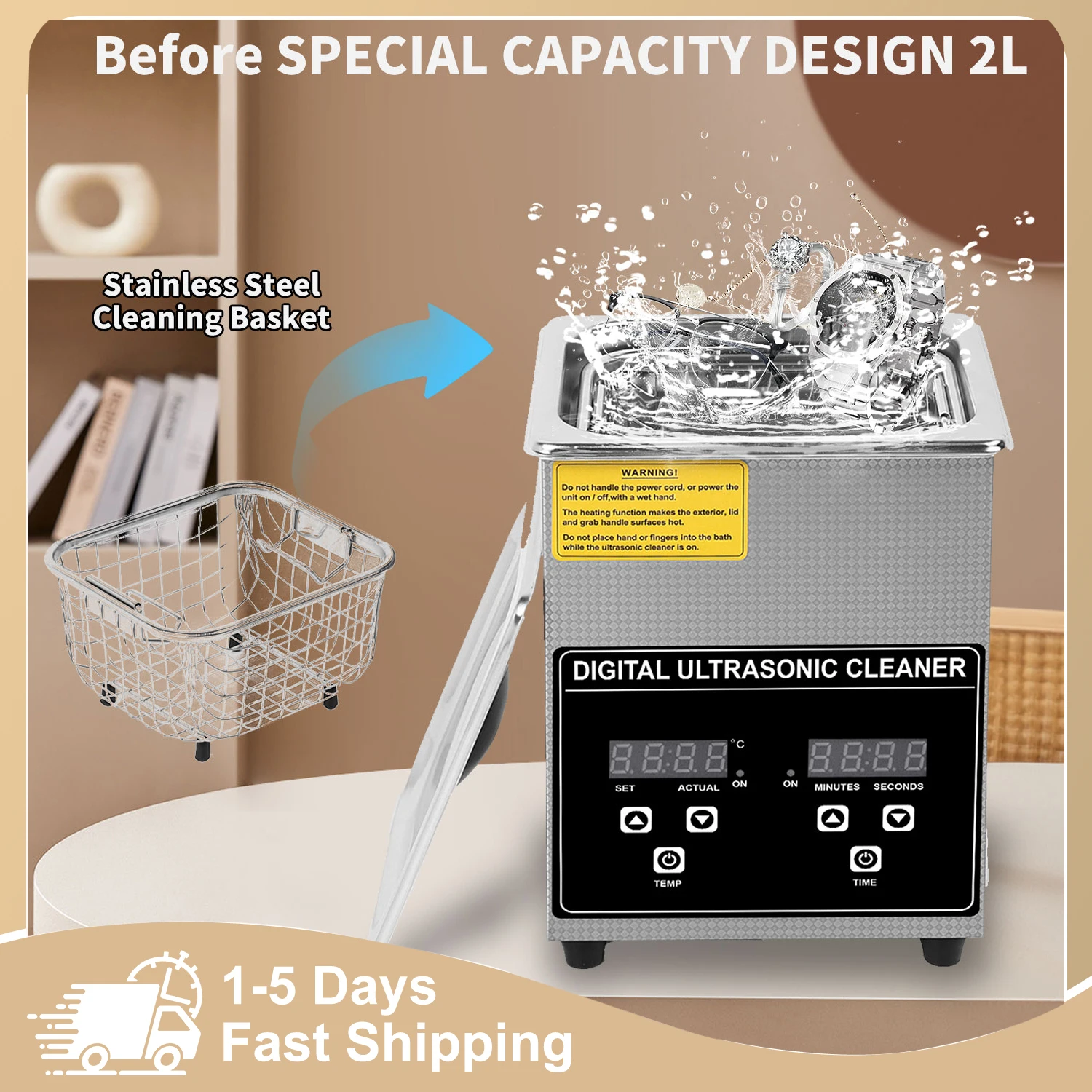 Nettoyeur à ultrasons en acier inoxydable 2L, nettoyeur soni...