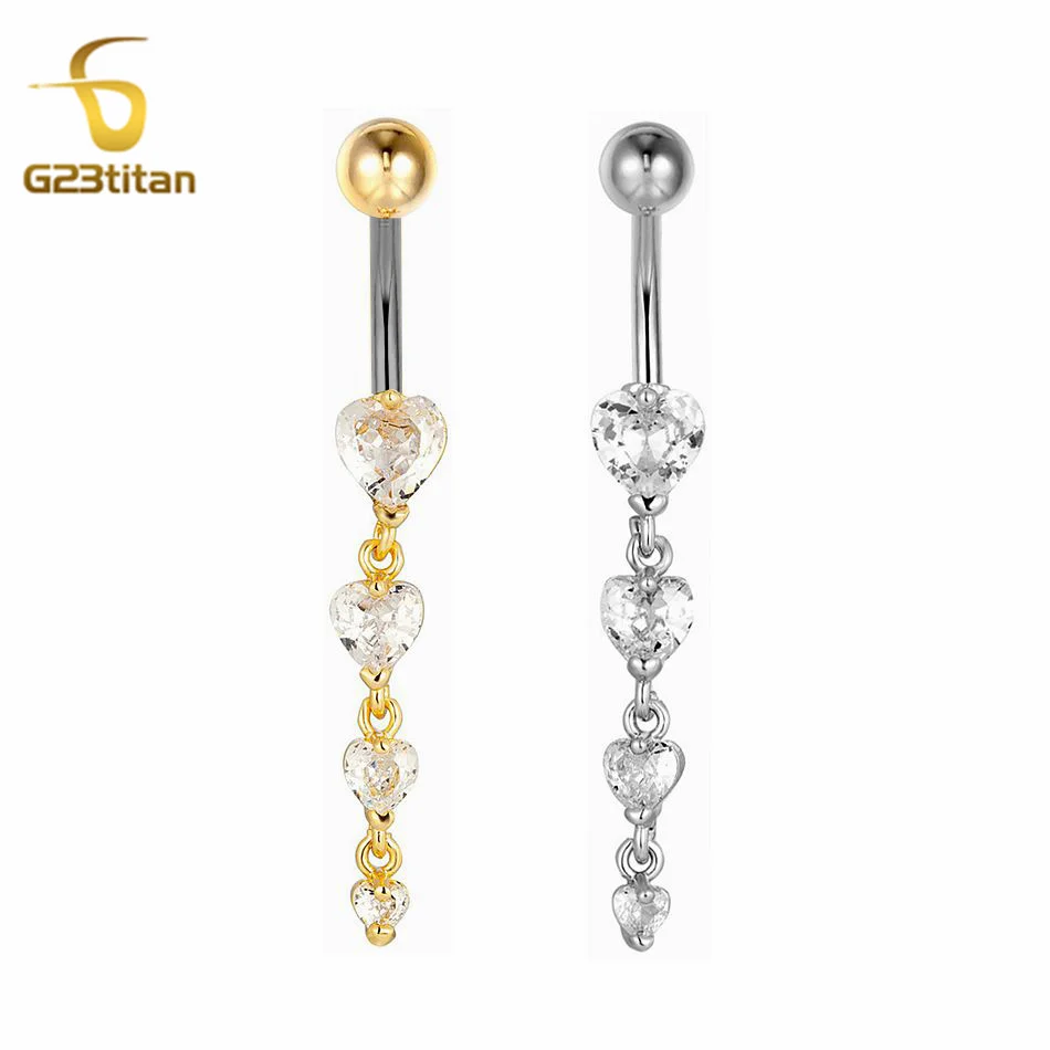 Anneau de nombril Long en forme de cœur, Zircon 14G, haltère chirurgical en titane, Pie...