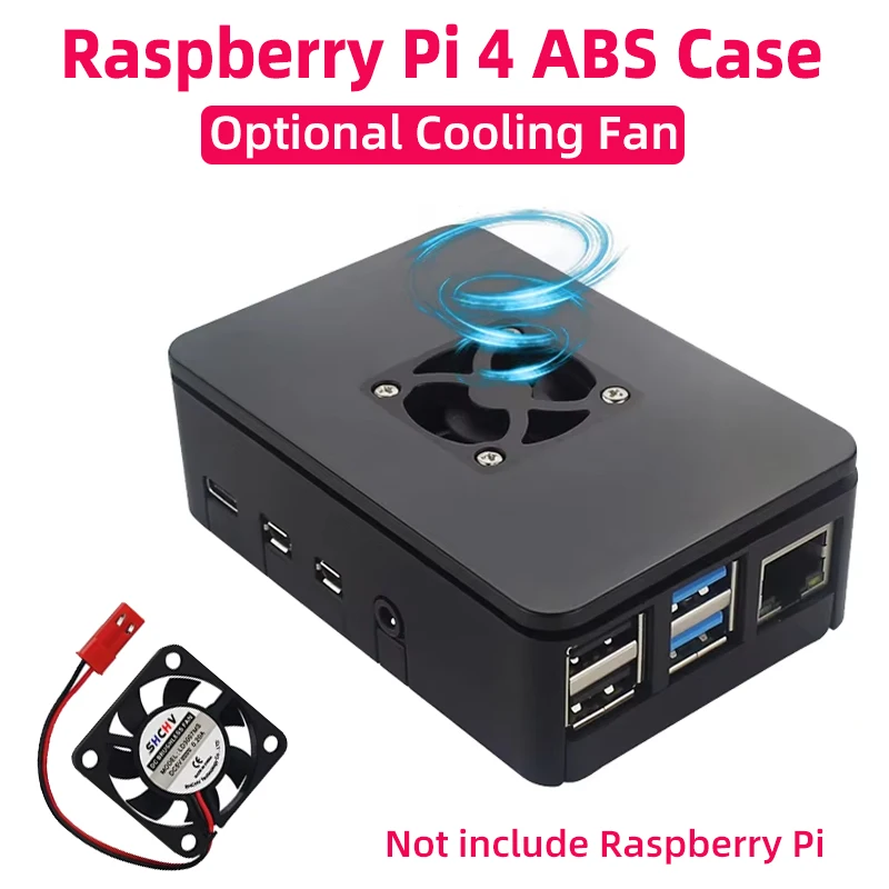 Boîtier ABS pour Raspberry Pi 4, boîtier en plastique, boîtier noir, Support de ve...