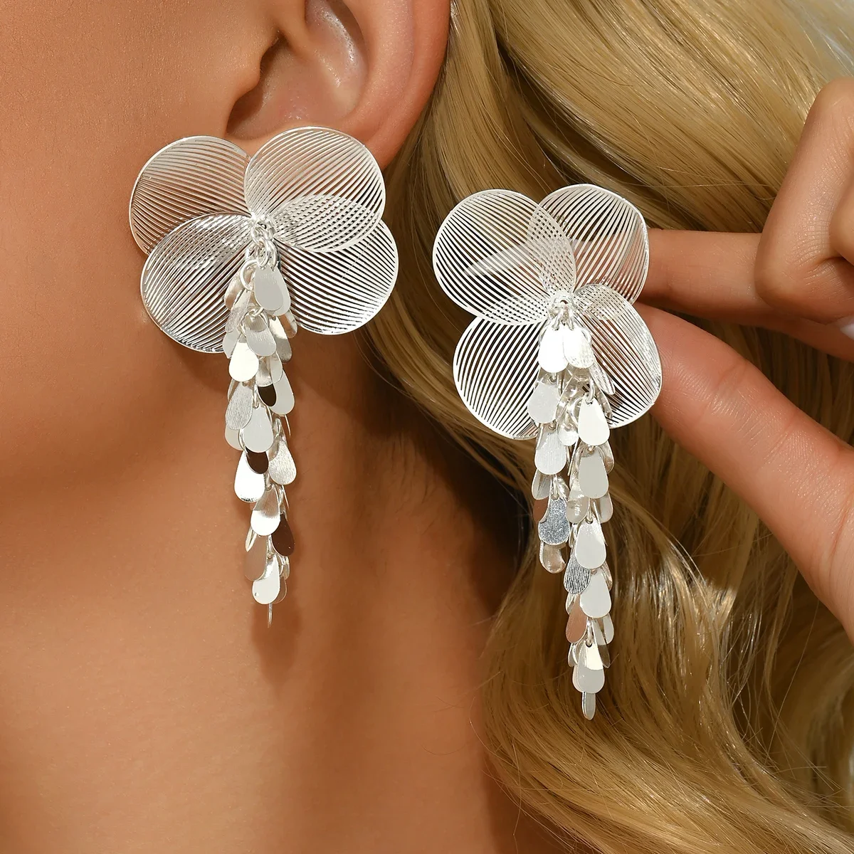 Boucles d'oreilles élégantes à fleurs ré...