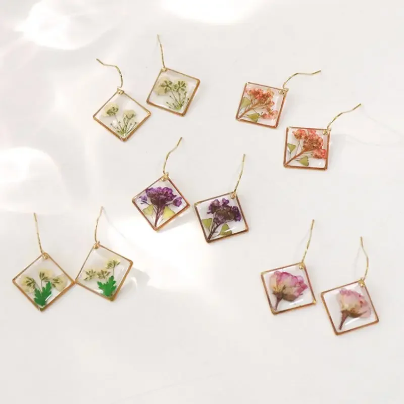 Boucles d'oreilles géométriques uniques à fleurs séchées pour fem...