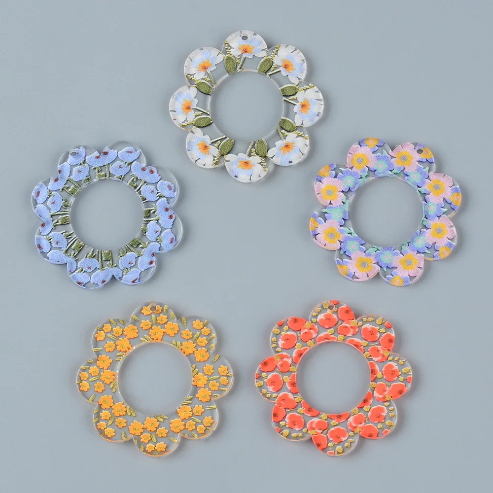12 pièces boucles d'oreilles pendentif fleur colorée acrylique mignon, boucles d'oreil...