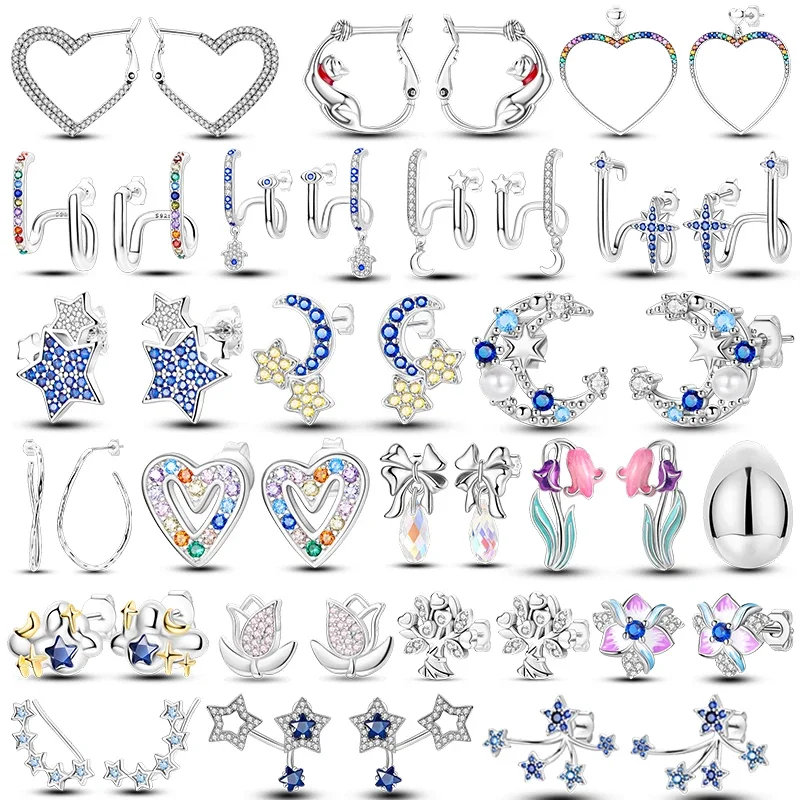 Boucles d'oreilles en argent regardé 925 avec perle, boucles d'oreilles étoile et lune...