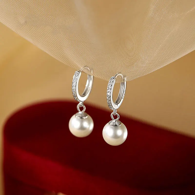 Boucles d'oreilles en perles brillantes, véritable perle d'e...