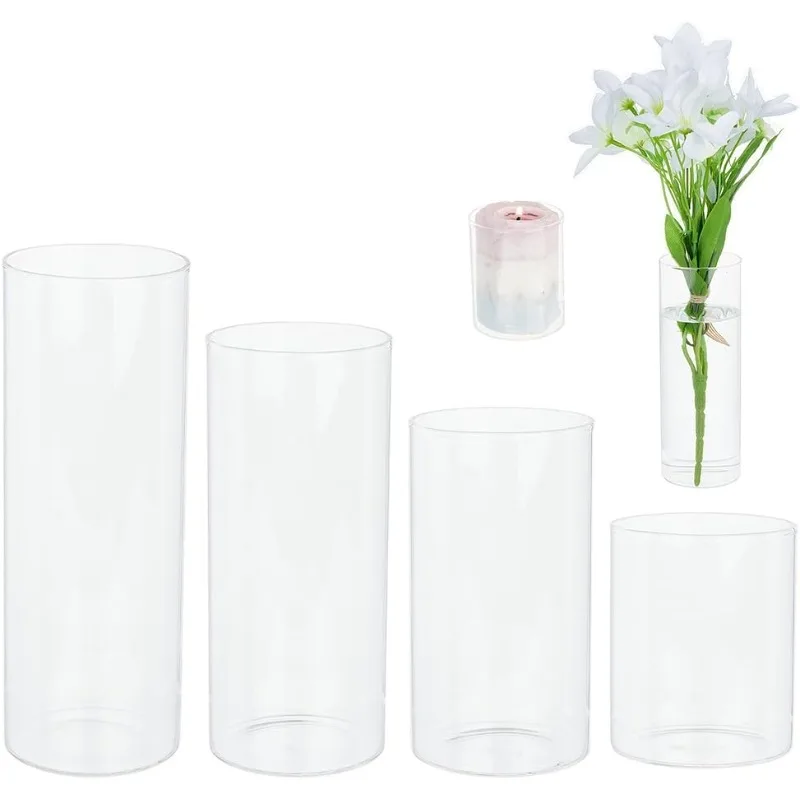 Vase cylindrique en verre, 4 Styles, pilier, décorations, Vase transparent, grand bougeoir fl...
