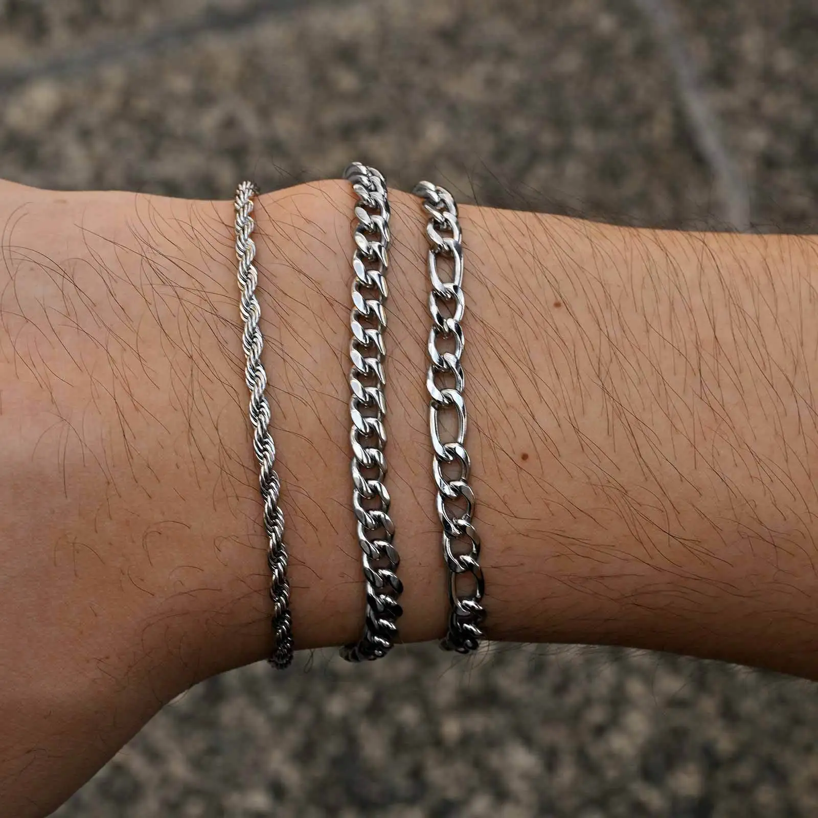 Bracelet chaîne pour hommes 3 pièces, Bracelet chaîne cubaine en acier inoxydable...