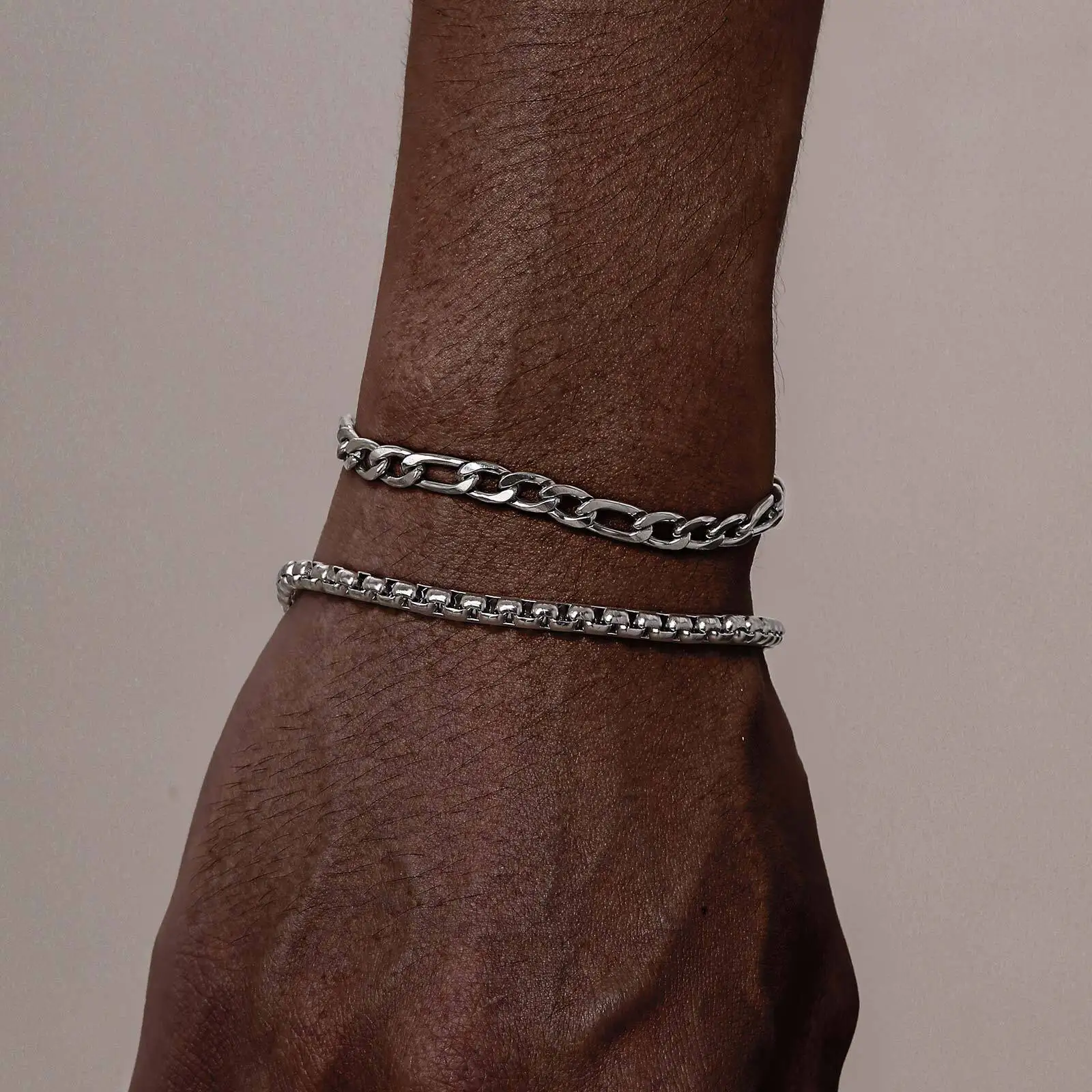 2 pièces/ensemble Bracelets de chaîne pour hommes, Bracelet de chaîne en boî...