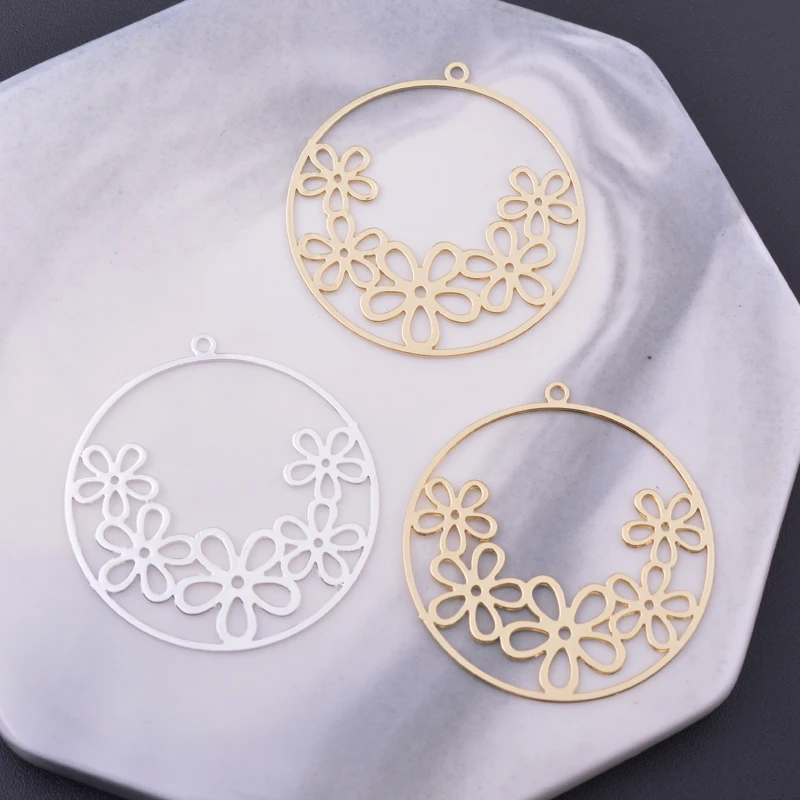 Breloques rondes en forme de fleur, couleur or clair, pendentif fin...