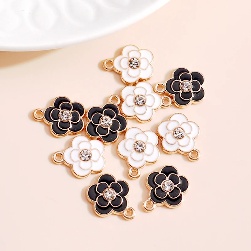 Breloques fleur en cristal émaillé 13x16mm, 10 pièces/lot, bricolage pour colli...